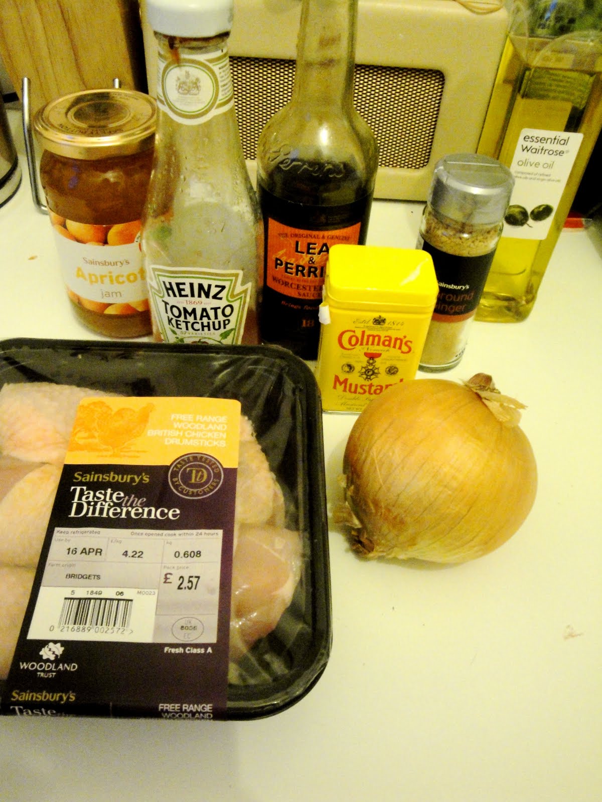 - Preheat the oven to 200C. Mix the Worcestershire sacue, ketchup, jam, ginger, onion and mustard powder in a shallow dish.